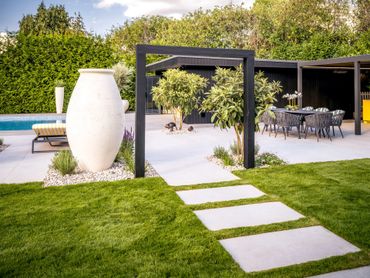 Our in-house installation team delivered all aspects of the hard landscaping, including bespoke paved areas, garden structures and outdoor entertainment zones. By combining innovative design, carefully curated materials and precision craftsmanship, Iconic Landscapes created an inspiring, high-end garden that delivers true showpiece elegance—an outdoor oasis fit for a Hollywood star.
